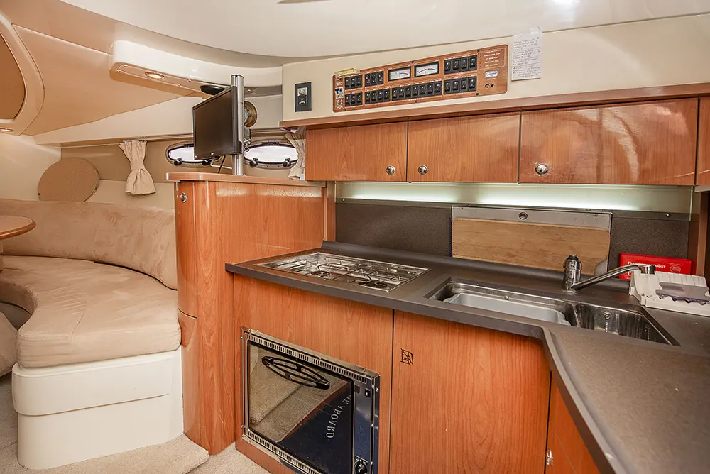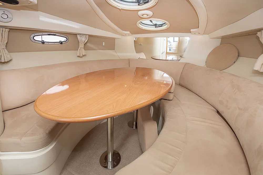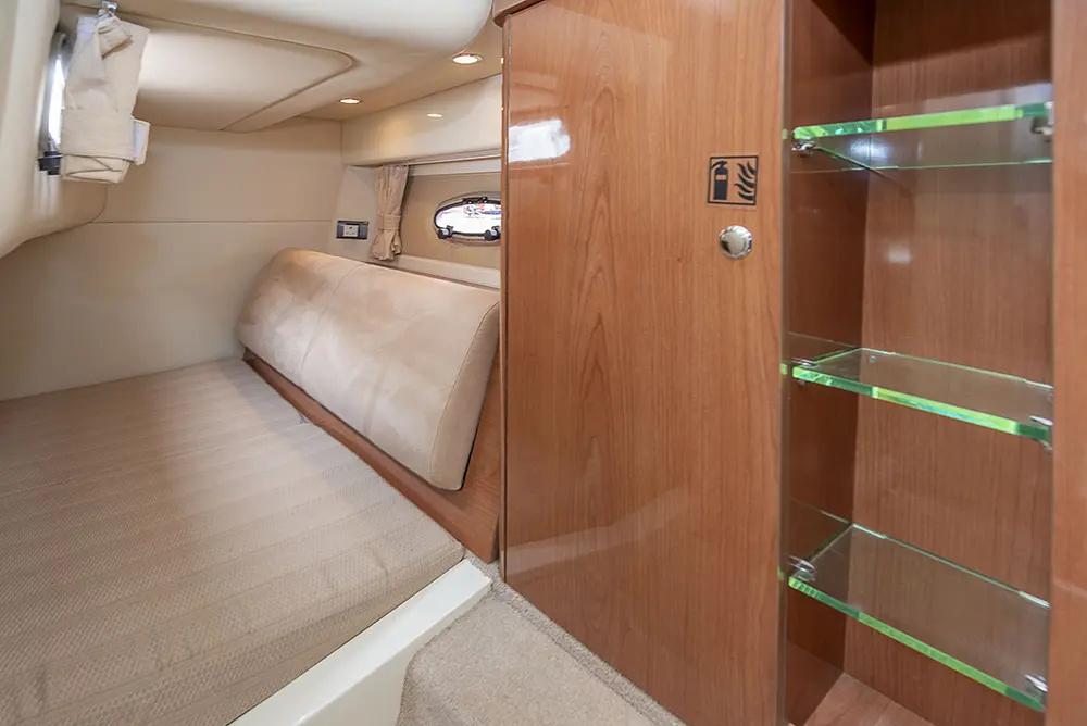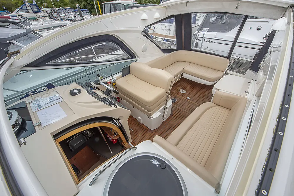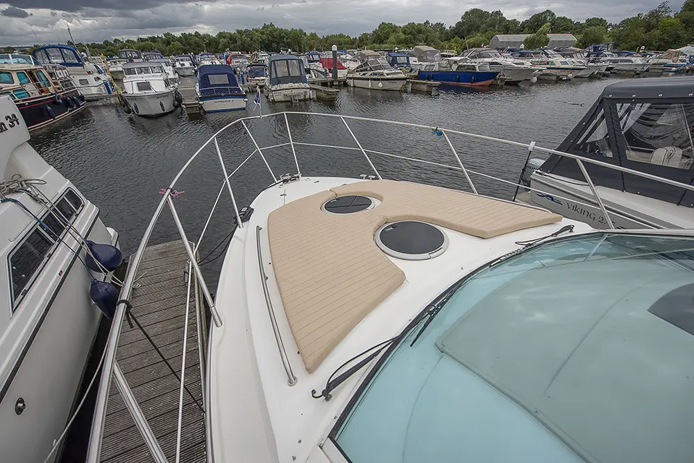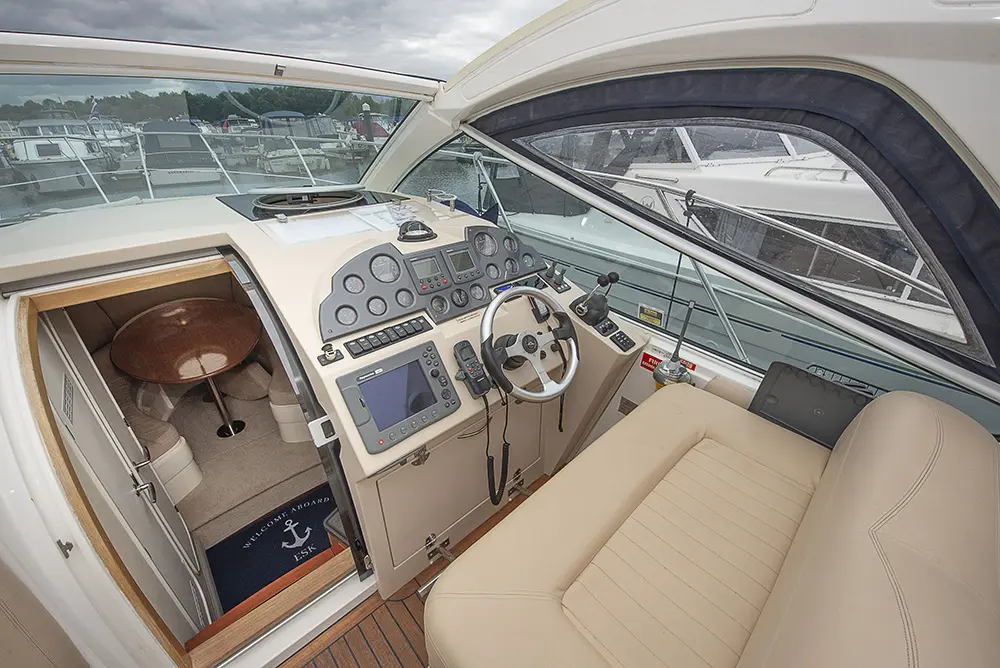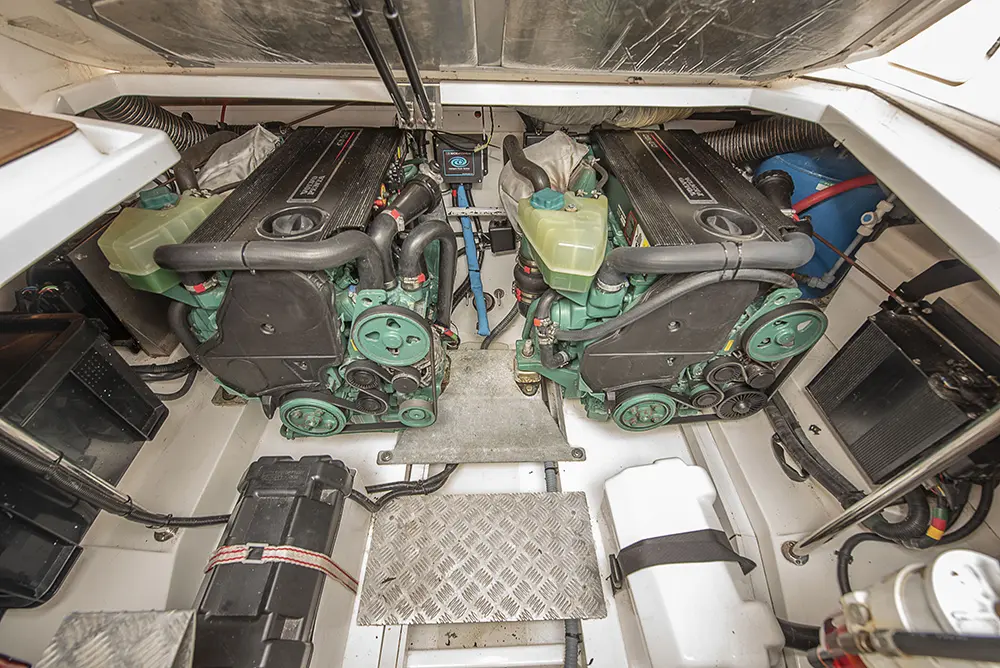 Introducing "Esk," a stunning Sealine SC29 sports cruiser that exudes elegance and performance, located in coastal waters until February 2023 and ready to become the crown jewel of your nautical adventures. This pristine vessel whispers luxury with every detail, ensuring that you and your guests experience the epitome of comfort and style afloat. Picture yourself at the helm, feeling the power of the twin Volvo D3-190 diesel engines purr beneath you as they propel "Esk" to an exhilarating top speed of approximately 30 knots. Yet equaly comfortable al onland speeds. The wind in your hair, the sun on your face, and the horizon calling – isn't that the life we all dream of? Stepping inside, you're greeted by an inviting saloon with a cozy double cabin that awaits a peaceful night's slumber. The saloon itself can be easily converted into a second sleeping area, ensuring that up to four of your nearest and dearest can share in the joy of this floating sanctuary. The heads, equipped with a modern electric toilet connected to a holding tank, are accessed through cleverly designed Jack & Jill doors, offering both convenience and privacy. The galley, a testament to practicality and beauty, boasts Corian worktops and cabinetry that gleams with a warm, welcoming sheen. Whether you're whipping up a gourmet meal or a quick snack, the two-burner gas hob and saloon fridge are at your service. And let's not forget the wet bar and fridge in the cockpit, ensuring that refreshments are never far from reach as you bask in the sun or entertain under the stars. Speaking of which, the cockpit is a marvel of social functionality. A 'C' shaped seating area with a table that morphs into a sunbed invites leisurely afternoons of laughter and conversation. The unique sliding manual roof opens wide, creating a vast, open-air space that lets the sun shine in or the stars twinkle down, depending on your mood. And when the sun is at its peak, the bow sun pad is the perfect perch for catching some rays. Navigating "Esk" is a breeze with her state-of-the-art electronics. The Raymarine C80 Chartplotter, DSC/VHF, and Plastimo Compass are your trusty companions, guiding you safely through even the most uncharted waters. And for those tricky docking maneuvers, bow and stern thrusters are on hand to make it look like you've been doing this all your life. But wait, there's more! "Esk" comes with a bevy of features that make her the envy of the marina. The LED lights cast a warm glow, setting the tone for evening soirees, while the Lenco trim tabs and pressurized hot and cold running water are just a few of the luxuries that make this boat feel like home.And when the day is done, and it's time to take a dip, the cockpit shower and swim ladder are there to welcome you back on board. After all, what's a day on the water without a refreshing plunge?Finally, to protect your investment from the elements, "Esk" comes with a stylish camper cover that not only shields her from the sun and rain but also turns heads with its sleek design.In summary, "Esk" is more than just a boat; she's a floating oasis of comfort, a seafaring sanctuary that offers the perfect blend of performance and luxury. If you're looking for a weekend retreat or a vessel to conquer the coastal cruise of your dreams, this Sealine SC29 is the one for you. Welcome aboard!
