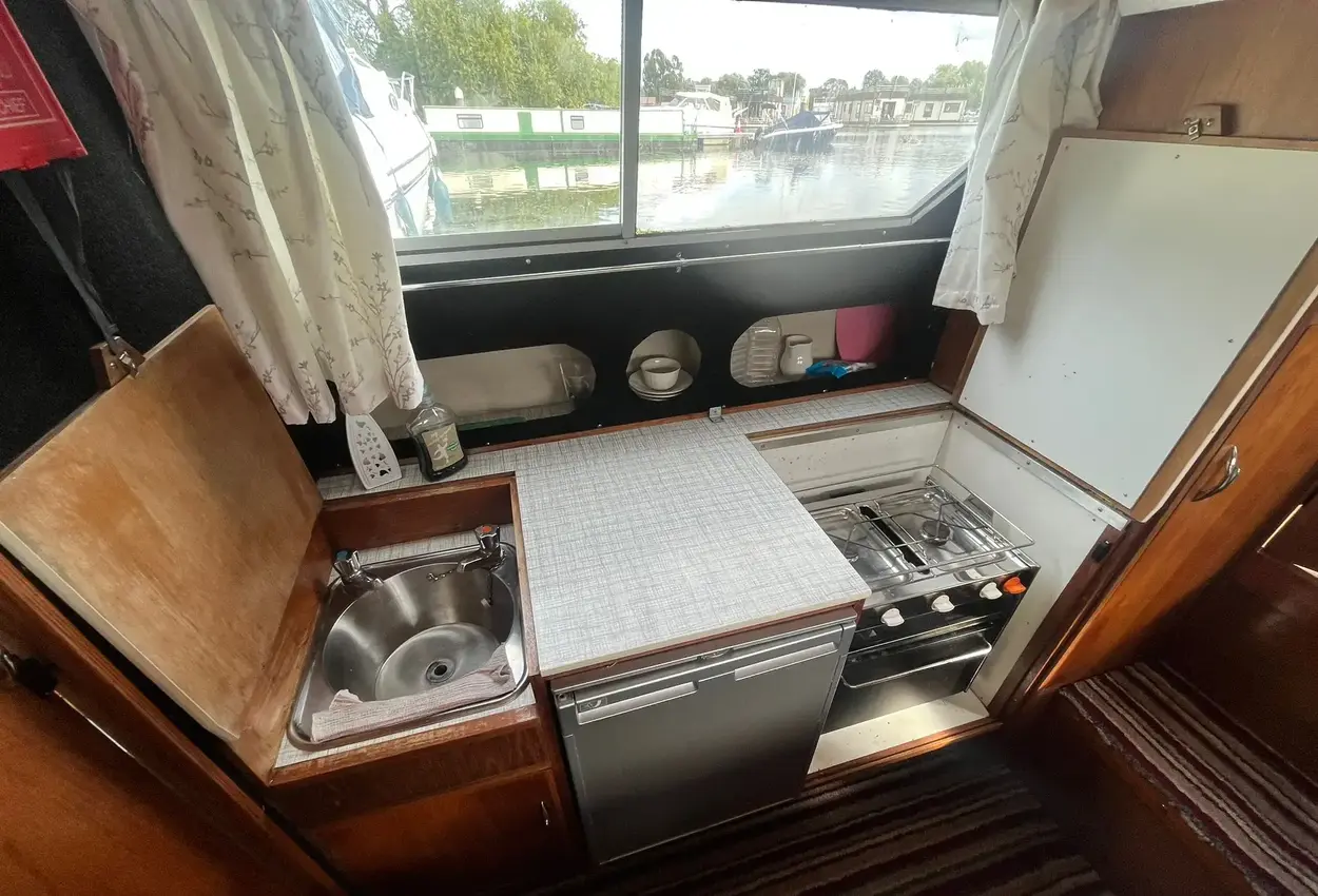 Built in 1979 by Seamaster, Simmer Down is a clean example of their 813 range. She features a spacious cockpit with plenty of room for multiple passengers. She has a large cabin area with a fully equipped galley and a seating area that can be converted to a double berth. She also boasts a walkthrough bathroom and a separate cabin towards the bow.