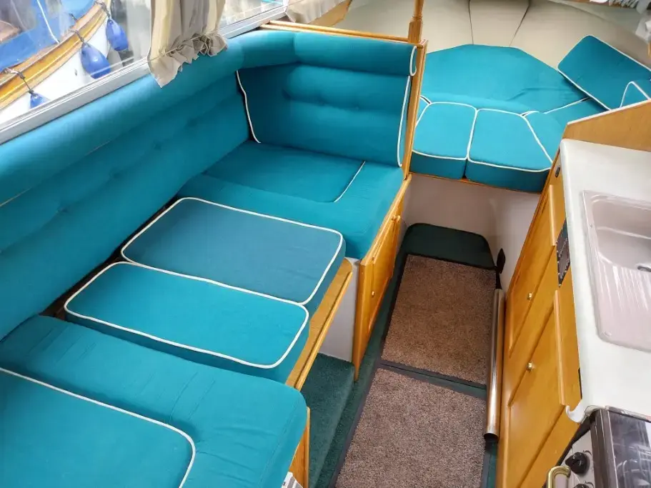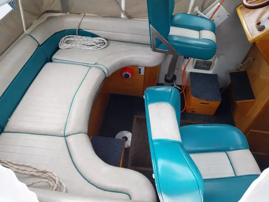 Junic is an easy and simple vessel for people that are new to boating. The Honda outboard is easy to manage and cost effective to maintain. Whilst having the ability to passage up to 6, there is also the space to berth up to 4 which opens the opportunity for weekend trips up and down the waterways. Junic has had a full engine service which leaves you with the confidence of driving away with full confidence. The high helm seat allows for full visibility when captaining and the space at the back of the cockpit allows for passengers to relax and enjoy views along the river.