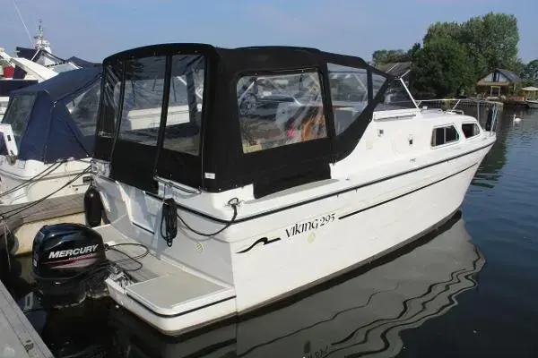 This Viking 295 features a number of upgrades including power steering, bow thruster, heating, and a unique reduced height gunnel for easier access into the cockpit. It also has a full-width bathing platform with easy board transom access. The boat accommodates 6 berths in 3 areas within the cabin, which can be separated for privacy.
