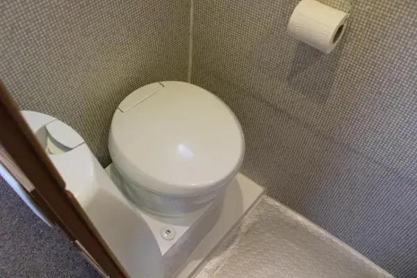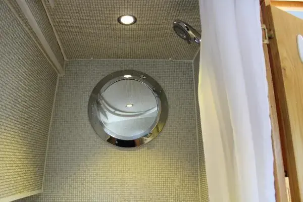 Large toilet compartment with ensuite facility to saloon and forward cabin
