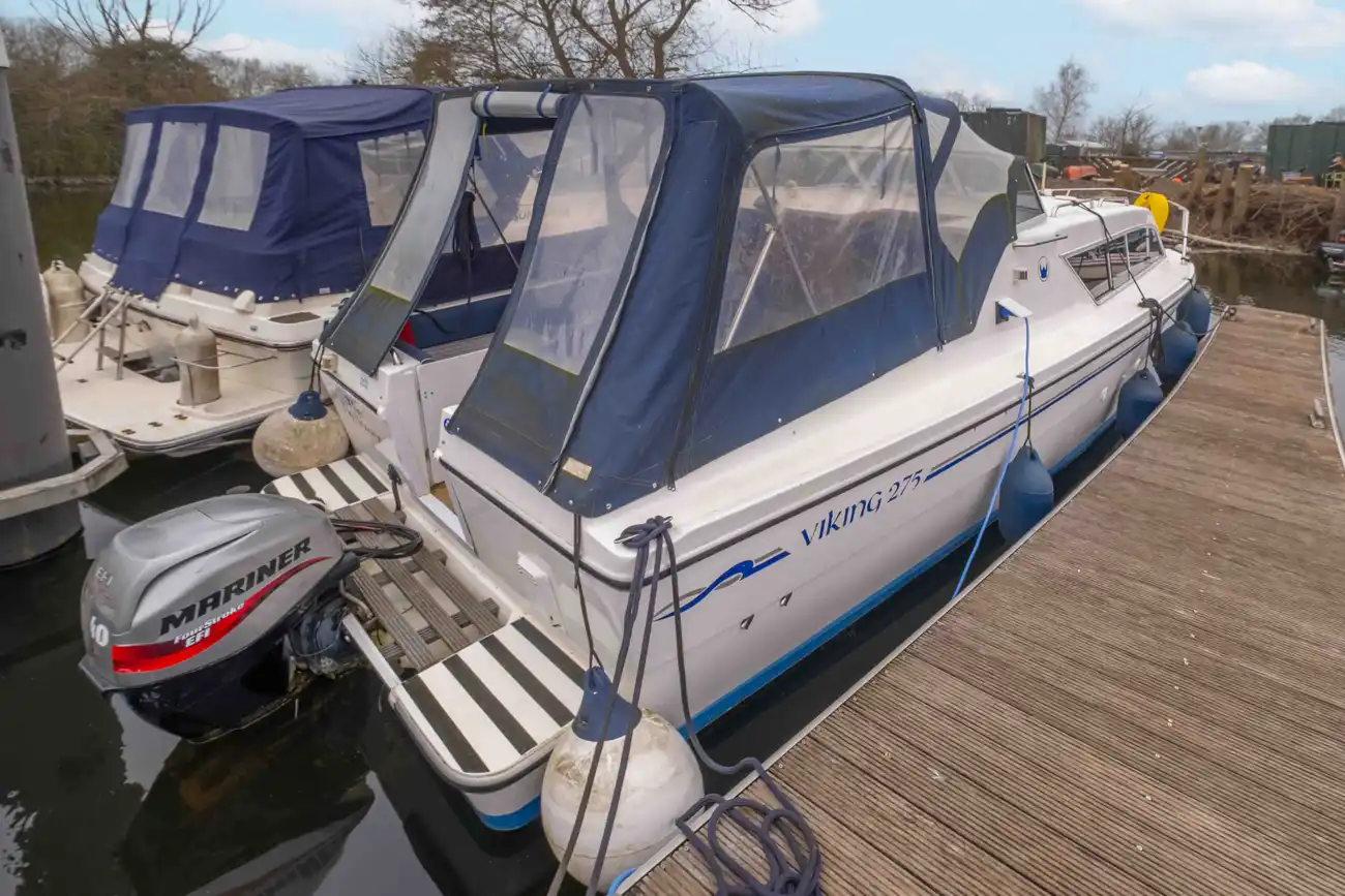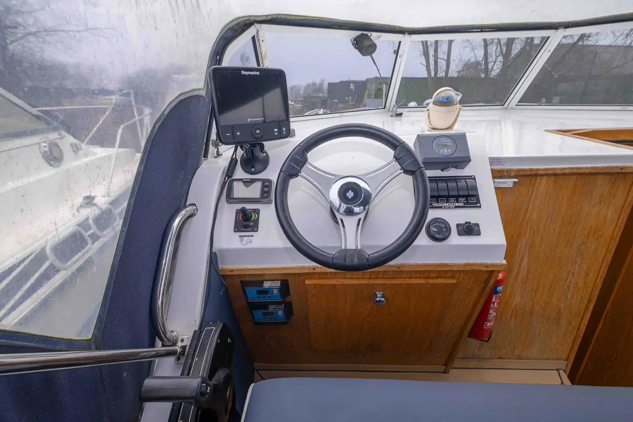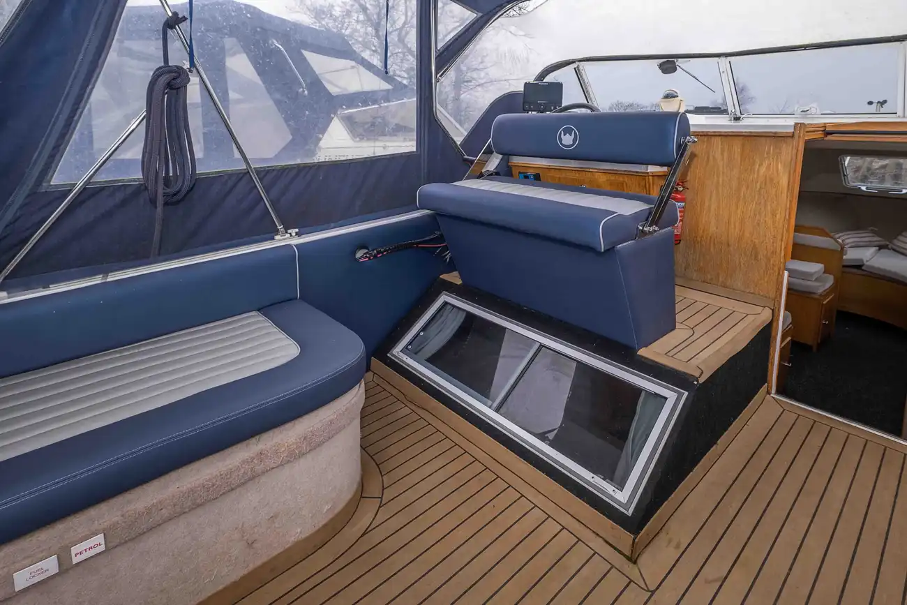 The Flyflower is a fine example of a Viking 275 which is excellent for travelling up and down the waterways for day trips with the possibility for 6 to stay overnight for longer trips. The cockpit area is perfect for socialising with passengers and ideal for enjoying the scenic landscape along the rivers. The interior space offers comfortability when dining and lounging, with the ability to cook in the well appointed galley. The Flyflower is easy to manoeuvre when sailing and mooring with the assistance of the bow thruster. Please call us on 0118 947 7770 to arrange a viewing.