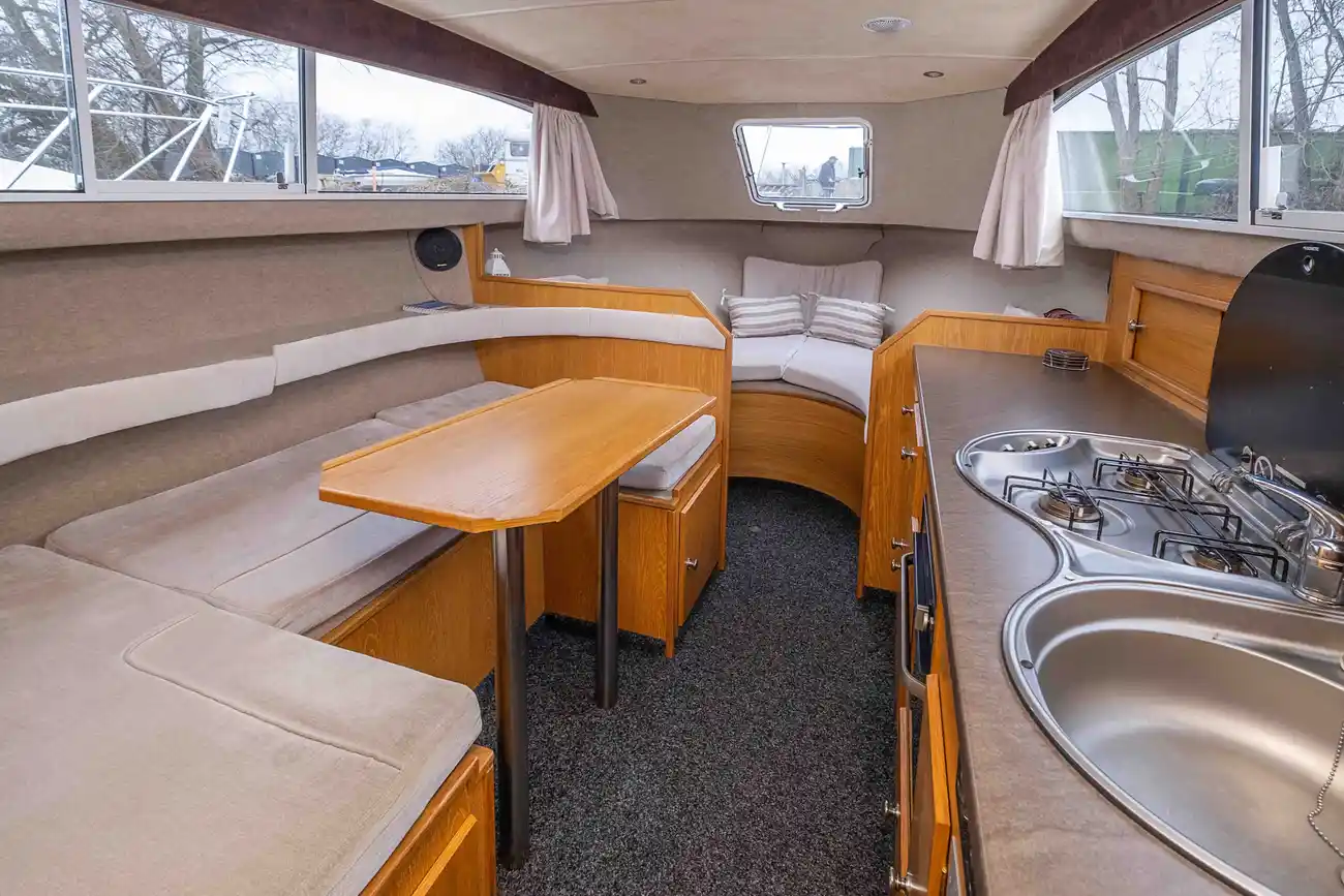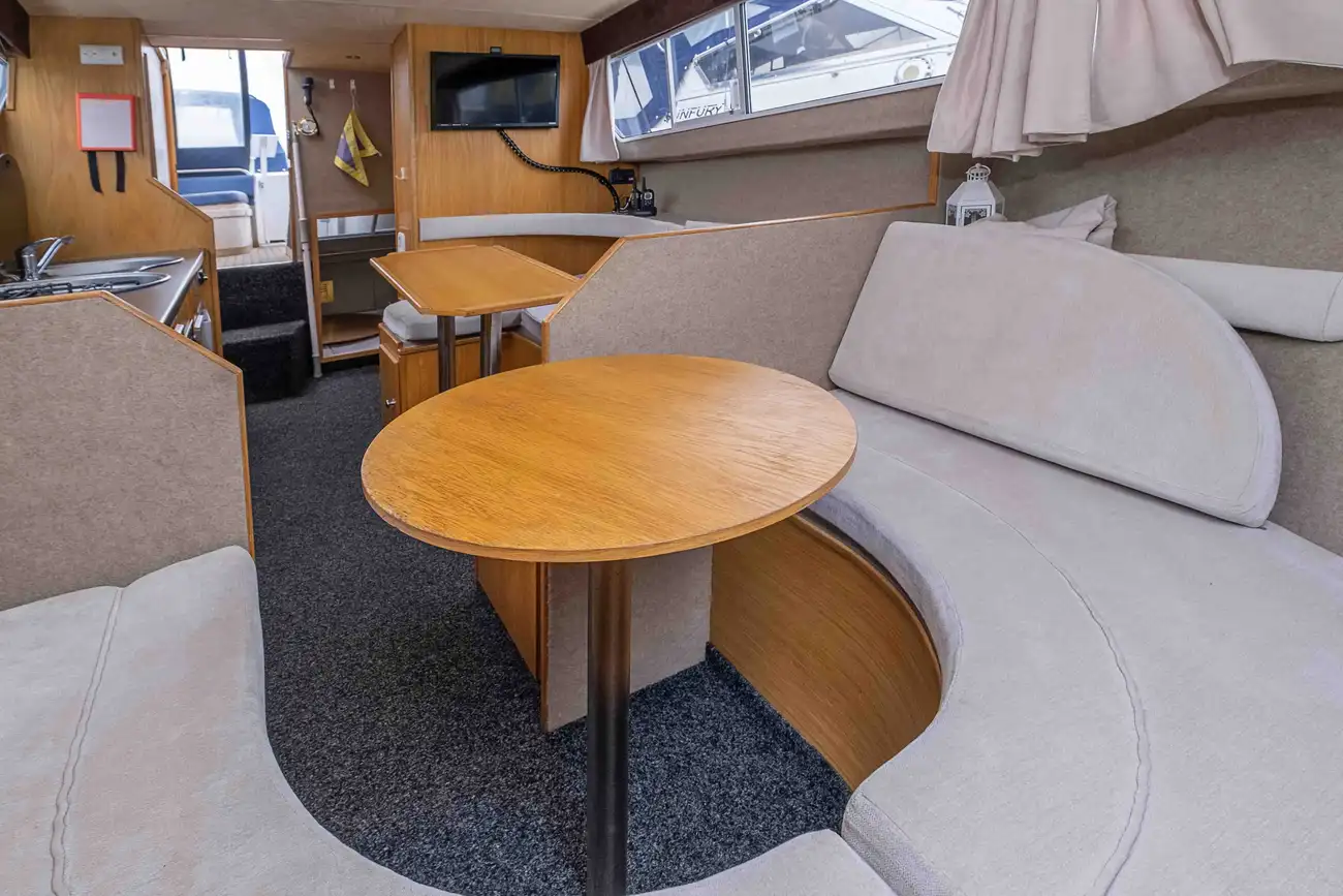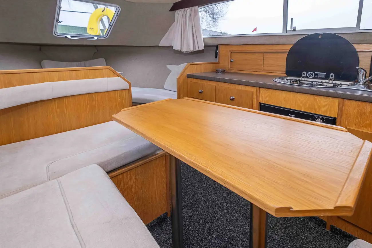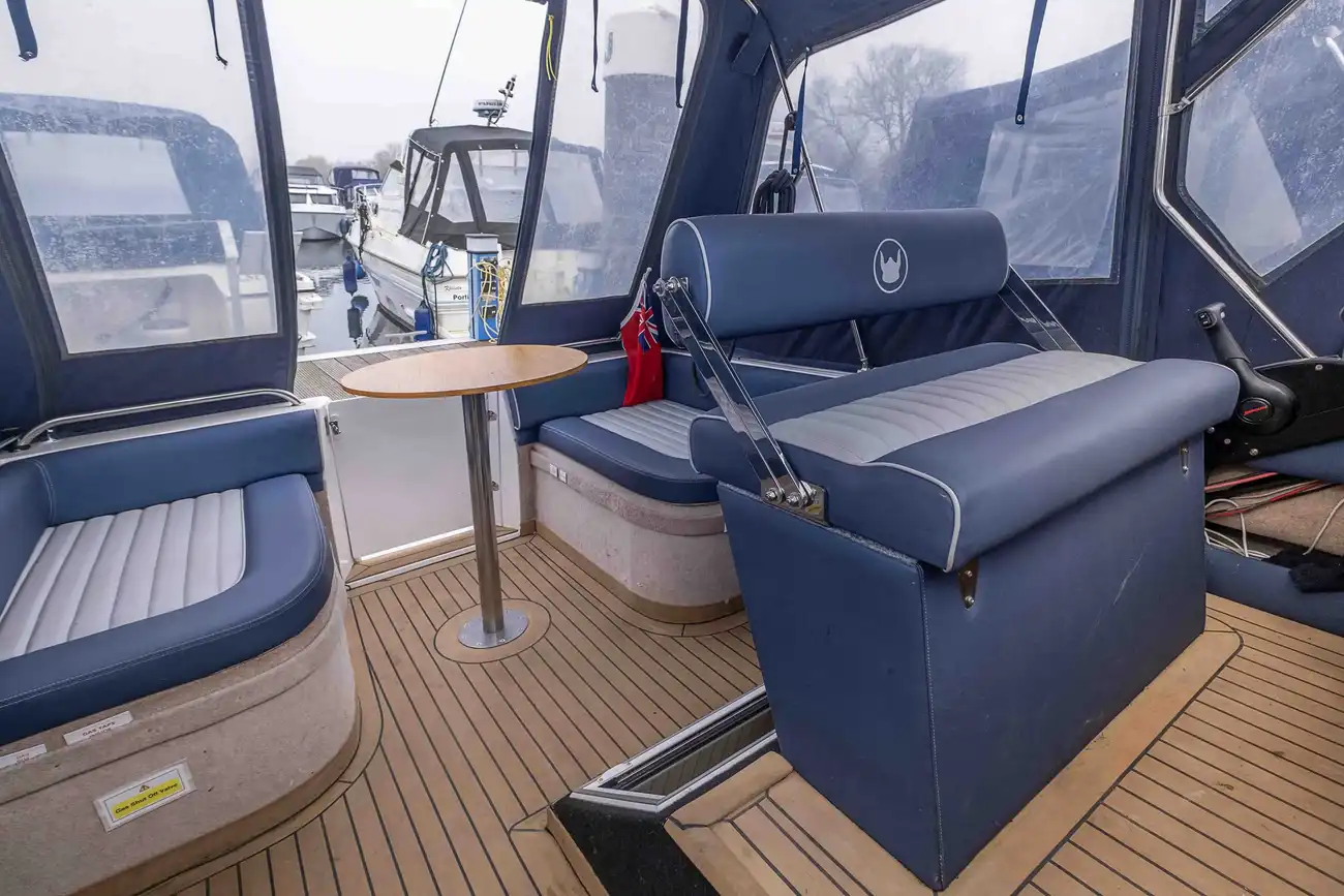 The Flyflower is a fine example of a Viking 275 which is excellent for travelling up and down the waterways for day trips with the possibility for 6 to stay overnight for longer trips. The cockpit area is perfect for socialising with passengers and ideal for enjoying the scenic landscape along the rivers. The interior space offers comfortability when dining and lounging, with the ability to cook in the well appointed galley. The Flyflower is easy to manoeuvre when sailing and mooring with the assistance of the bow thruster. Please call us on 0118 947 7770 to arrange a viewing.