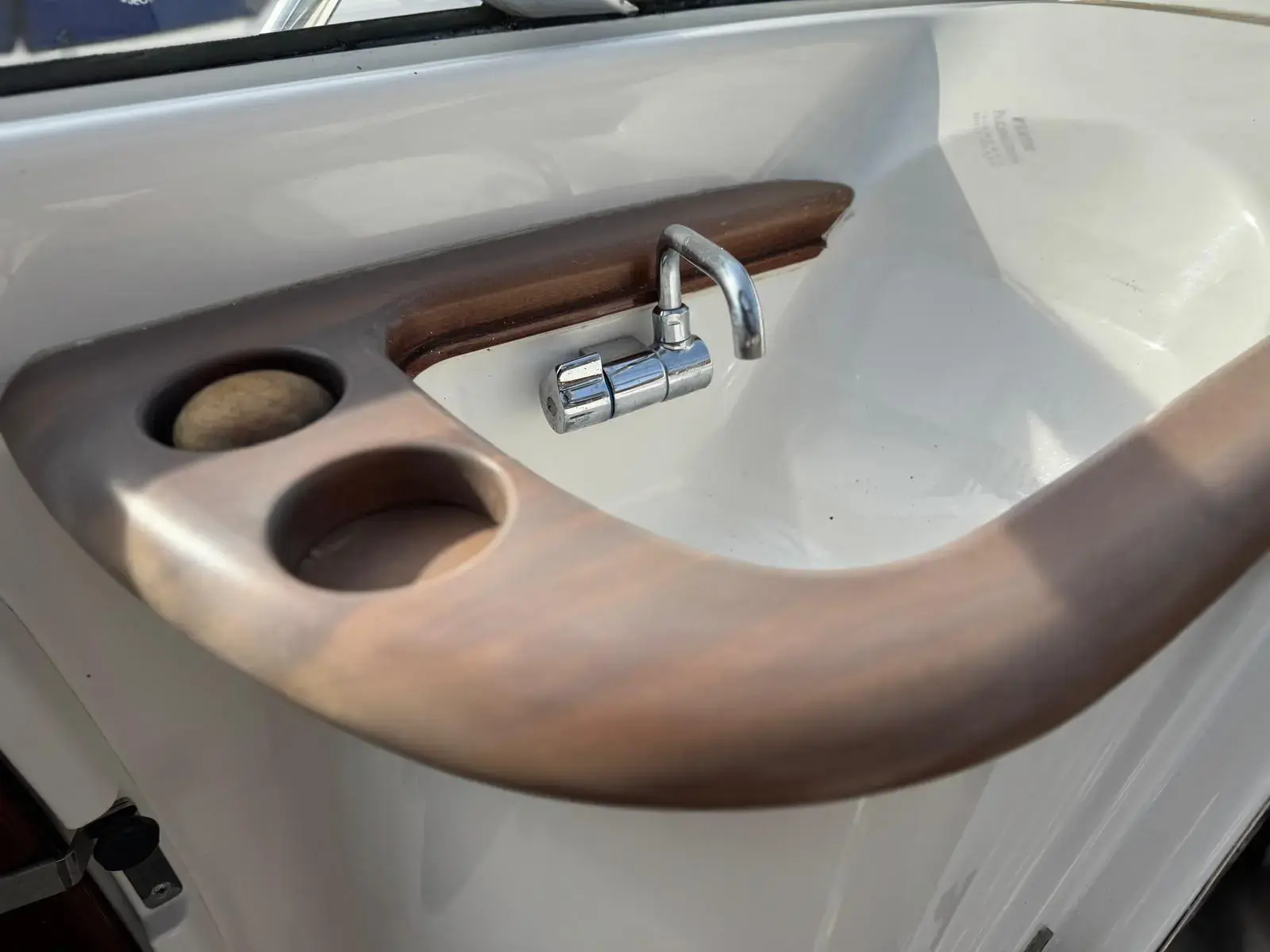 In front of the navigator is the practical cold water sink and in the footwell floor is a convenient bottle store allowing you to have your favourite summer tipple onboard. You will also find the hi-gloss mahogany table neatly stowed away on the port side. This mounts into the deck towards the stern as not to compromise the size of the cockpit.