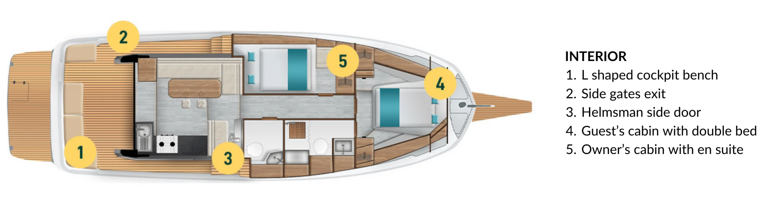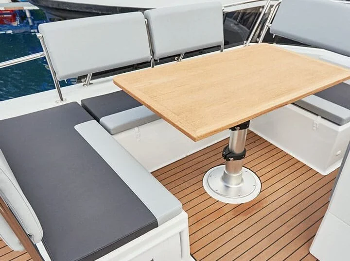 Delphia’s designs encompass a home away from home feel, with comfortable U-shaped seating, a fully equipped galley, generous standing headroom, natural light, domestic appliances, and storage spaces all at your disposal. The materials used have been carefully selected for ultimate comfort and luxury.