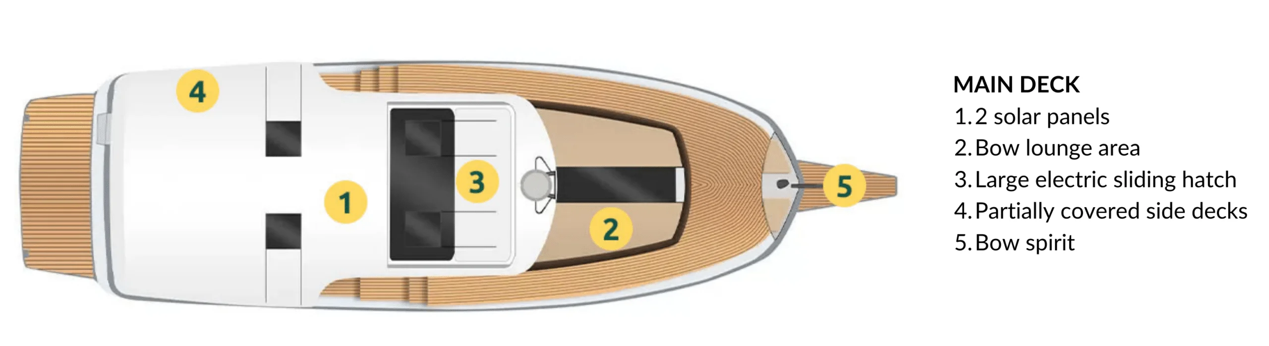 Specifically designed for waterways, all of the Delphia models have a low air draft, meaning that they can pass under the main bridges of rivers and canals and are easily maneuverable.