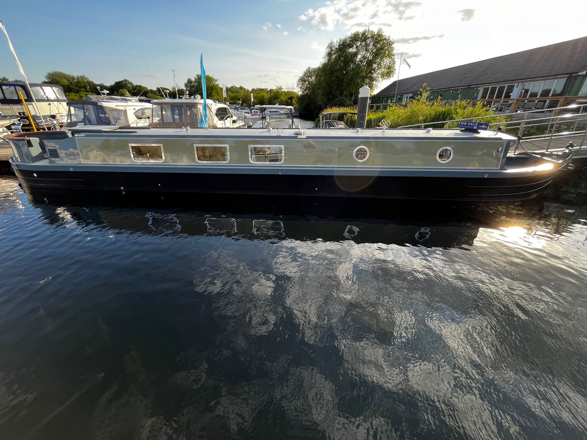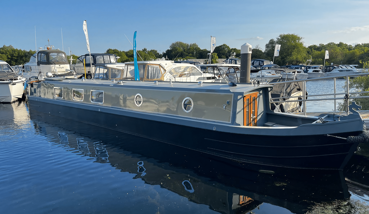 This 2025 Dragon Boats London Ltd. 55-foot narrowboat blends traditional craftsmanship with modern luxury, offering the perfect floating home for cruising the inland waterways in comfort and style.
