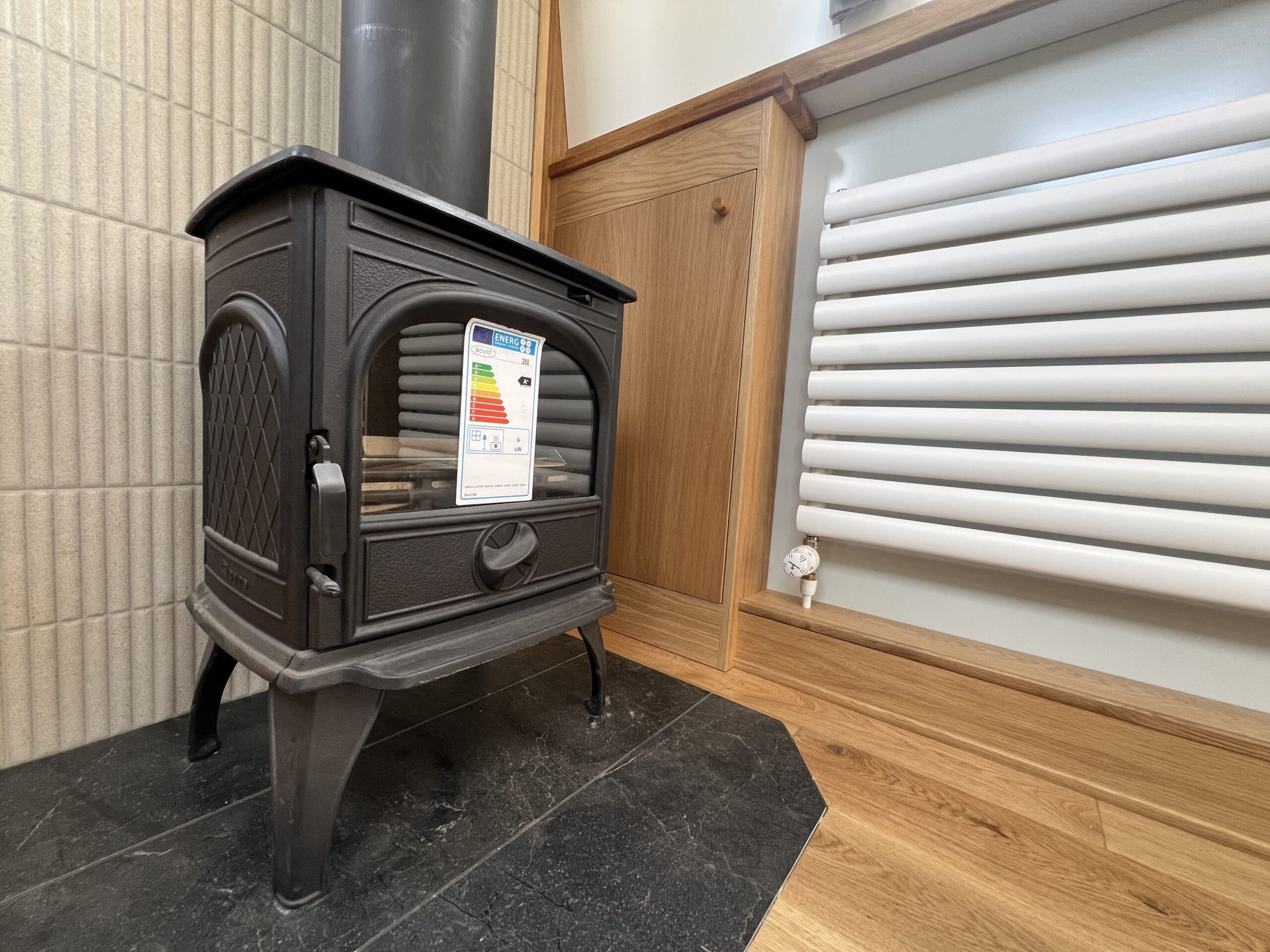 Inside, the warm glow of oak interiors and oak flooring welcomes you. A spacious saloon, complete with a Morso 1010 solid-fuel stove, invites cosy evenings, while Webasto central heating ensures year-round comfort. Large double-glazed windows and portholes bring in natural light and frame ever-changing views.